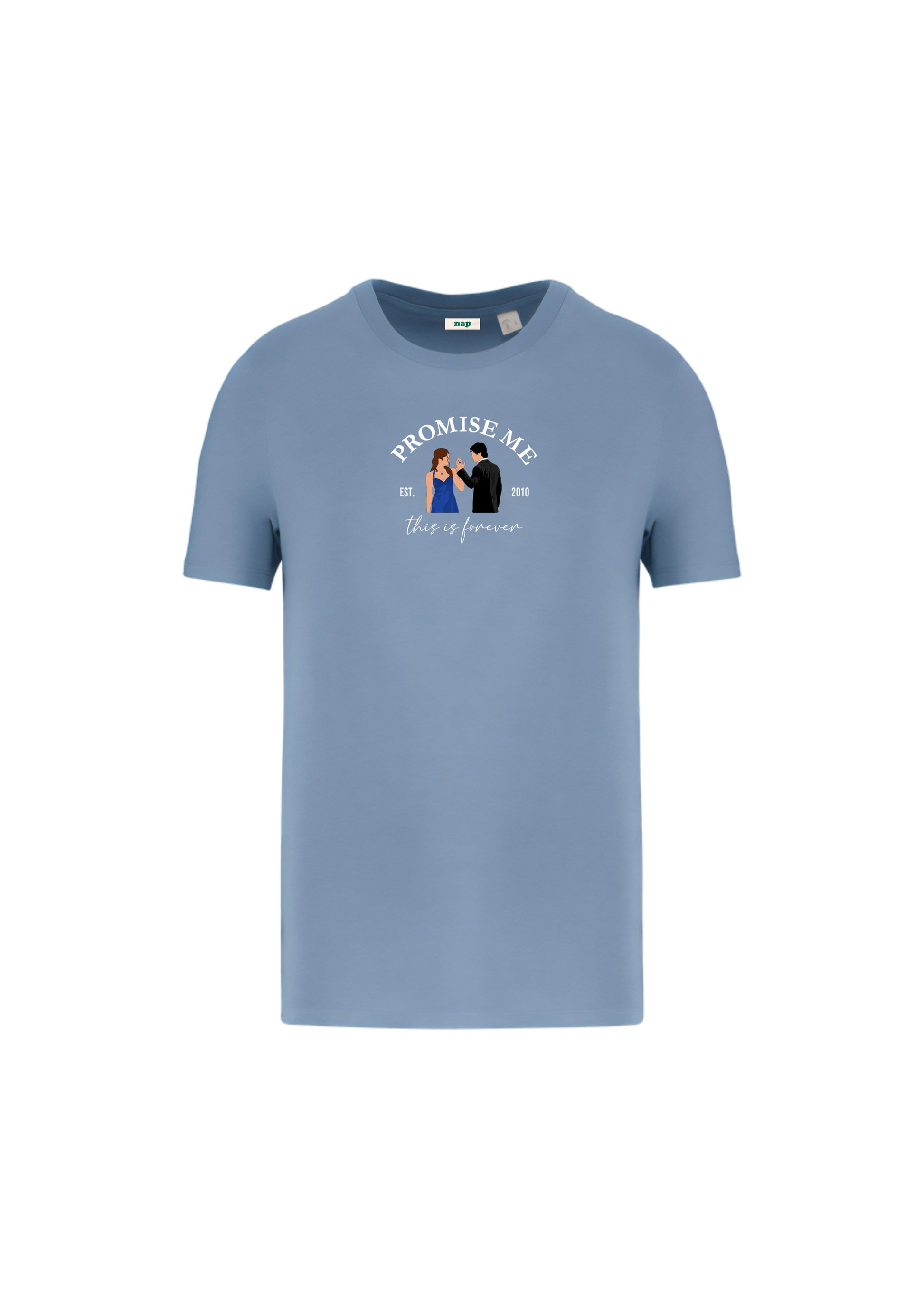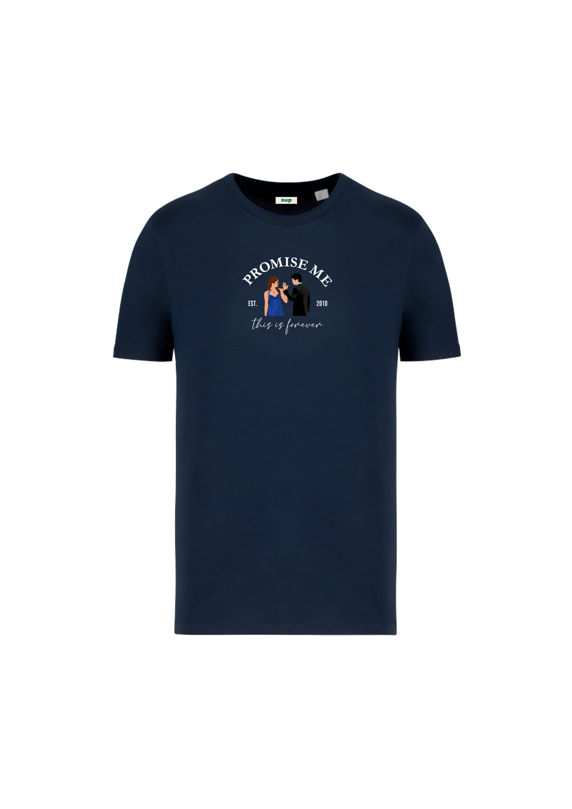 Camiseta con diseño estampado ''Promise me this is forever'', inspirado en la pareja formada por Damon Salvatore y Elena Gilbert (Delena) de la serie The Vampire Diaries (Crónicas Vampíricas en español).