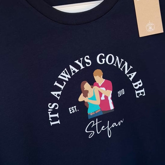 Camiseta con diseño estampado ''It's always gonna be Stefan'', inspirado en la pareja formada por Stefan Salvatore y Elena Gilbert (Stelena) de la serie The Vampire Diaries (Crónicas Vampíricas en español).