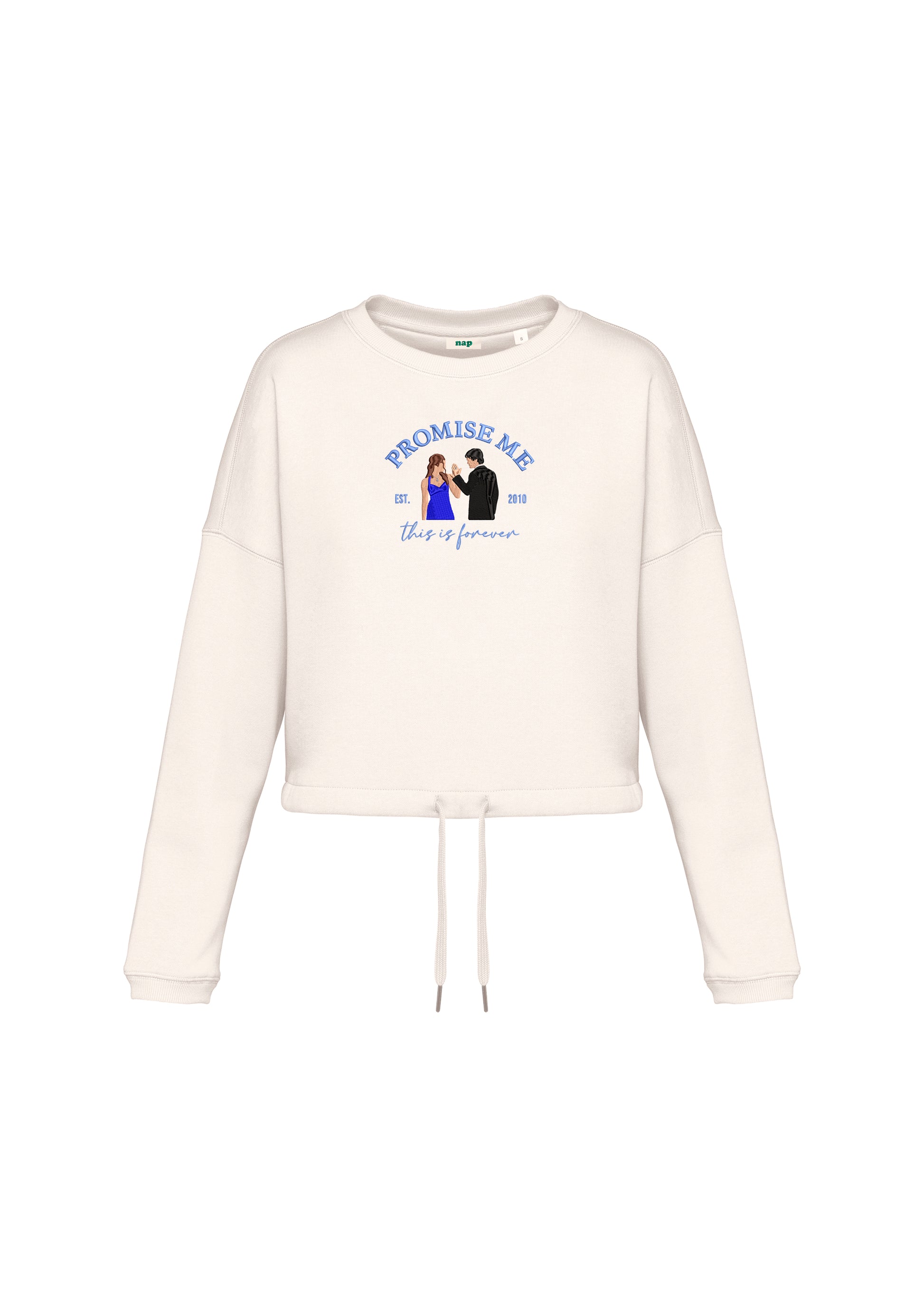 Sudadera con diseño bordado ''Promise me this is forever'', inspirado en la pareja formada por Damon Salvatore y Elena Gilbert (Delena) de la serie The Vampire Diaries (Crónicas Vampíricas en español).