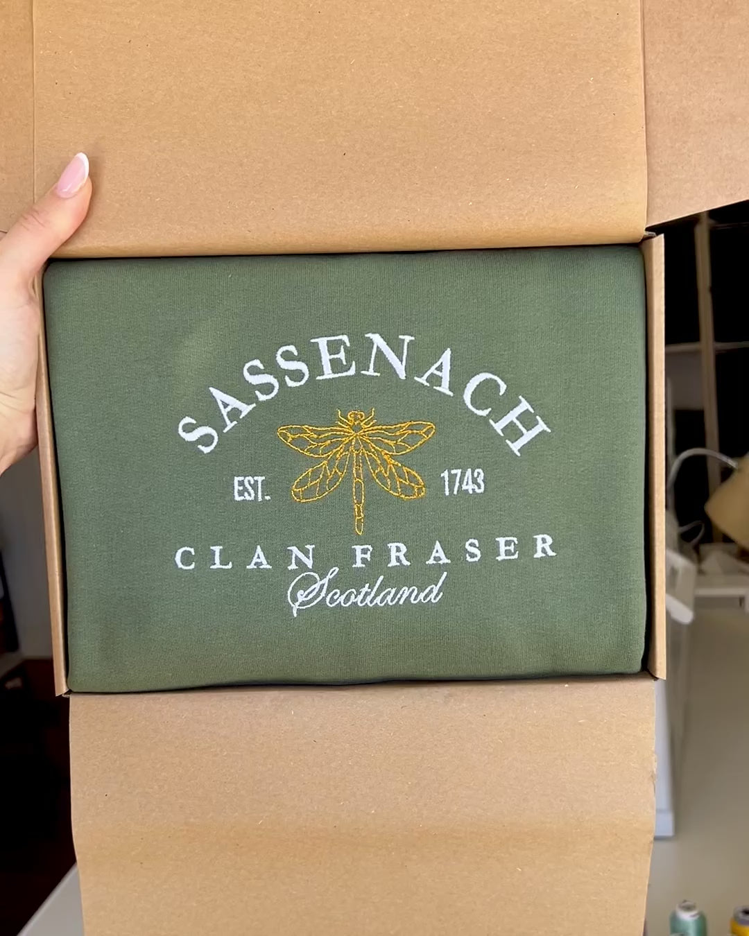 Sudadera con diseño bordado ''Sassenach'', inspirado en la pareja formada por Jamie Fraser y Claire Fraser, de la serie Outlander.