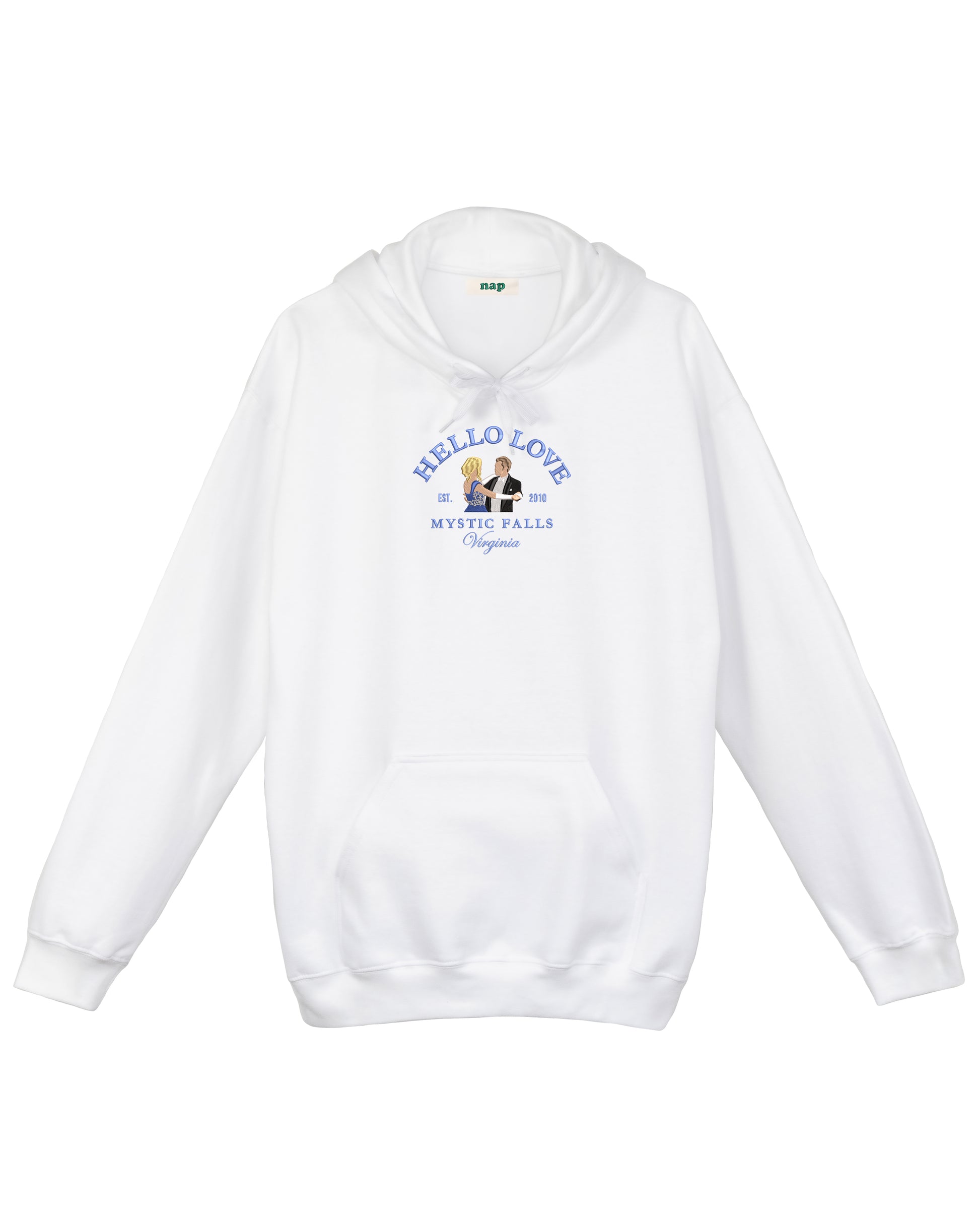 Sudadera con diseño bordado ''Hello Love'', inspirado en la pareja formada por Klaus Mikaelson y Caroline Forbes de la serie The Vampire Diaries (Crónicas Vampíricas en español).