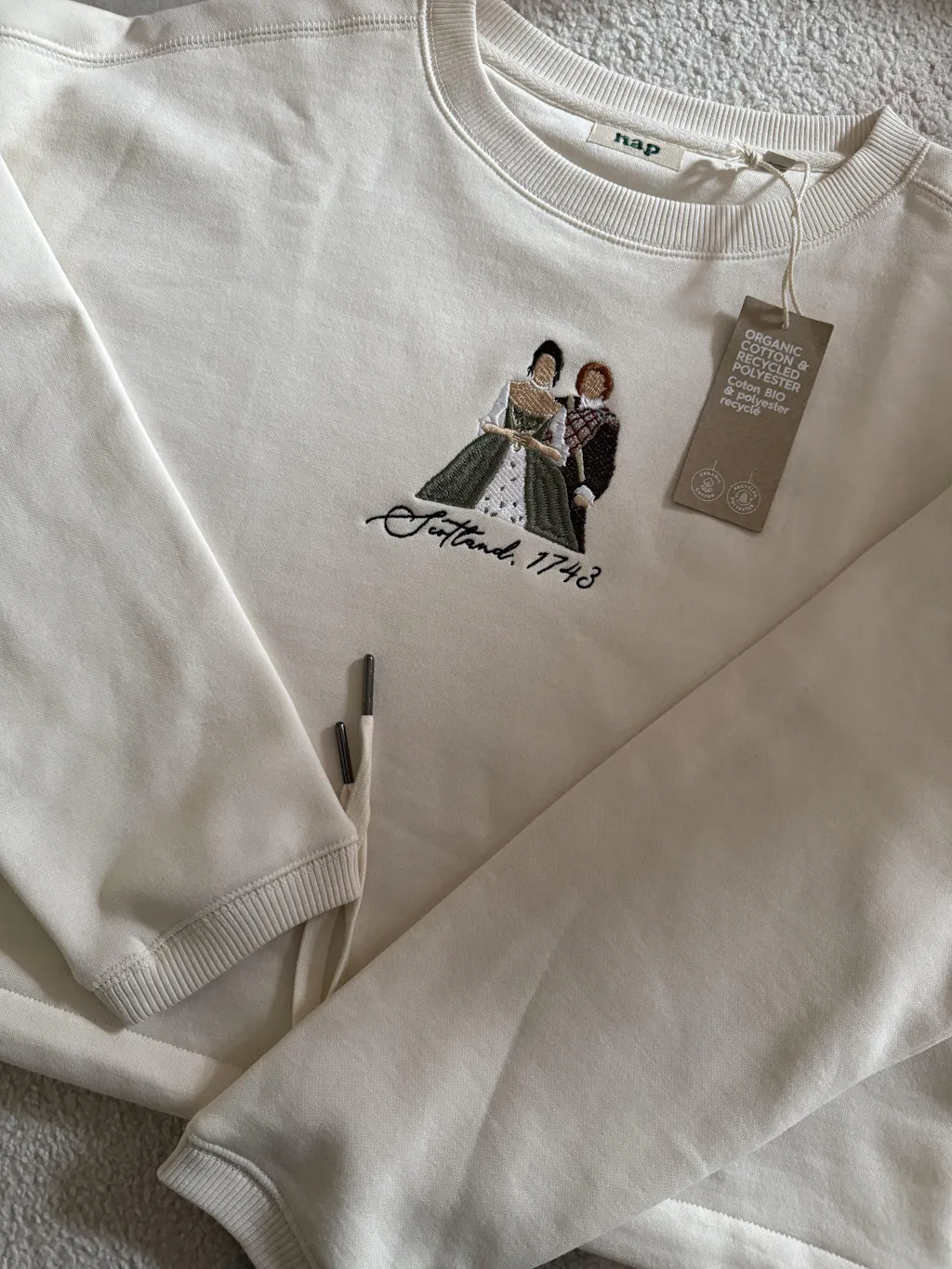 Sudadera bordada cropped Outlander Jamie y Claire Boda Scotland 1743